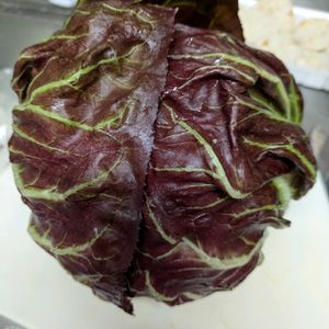 2024.12.9~ チコリ トレビス Radicchio ▪トレビスの原産地は地中海、イタリア ▪イタリア原産のチコリーの栽培種でイタリアンチコリーとしても知られる。 ▪多年生植物 ▪キク科の野菜 ▪ヨーロッパで人気のある葉物野菜チコリの仲間。赤チコリ、ラディッキオとも呼ばれる。同じキク科のレタスのように結球する。 ▪生長とともに葉が紅く変色して色鮮やかになってくる。この紅い色素はポリフェノール。 ▪見た目は紫キャベツに似ているが、柔らかい食感とチコリ特有の独特な苦味がありまったくの別物。 ▪サラダにしたり肉料理に添えたりして生で食べると独特の苦みをおいしく味わえる。器のように葉を使うと料理が華やかになる。 ▪多年生植物 ▪グリルまたはローストすると柔らかくなる。加熱でほろ苦味も増す。 ▪千切りにしたトレビスに塩、コショウ、オイル、レモン汁でお肉の付け合わせに。 ▪ラディッキオは収穫の後、暗い部屋の水中に置かれる。こうすることにより、光の欠如とクロロフィルの生産阻害のため、緑色の色素が失われる。 ▪不結球品種、半結球品種、結球品種とある。 ▪葉の厚さと歯ごたえはキャベツとレタスの中間ぐらいで、歯切れがよく、芳香がある。 ▪主な旬は、11~3月といわれ、赤紫色が鮮明で、全体にツヤがあるものが市場価値の高い良品。 (▪根をローストして挽くと代用コーヒーになる。) ▪茹でると、アントシアニン色素が水に溶け出すため、栄養が損なわれる。 要するにトレビスということで合っているかしら。苦味が苦手な自分にとってはほとんど彩りかな~。すでに葉脈が紫色でかわいい。イタリアで少し変わった育て方をされているんだな。仲間のカステルフランコってすごく綺麗だよね。