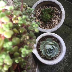 暑いですね〜夜でもすごく暑い😭 外にも出たくなく 多肉さんたち心配ながらも 頑張ってと祈るばかり😥 ①熊童子斑入りさん ②昨年4月に迎えたばかりの頃 大きくなりました(⸝⸝ơ ᎑ ơ⸝⸝)