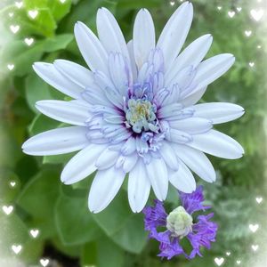 チーム・ブルーの花友さんにキリ番のお祝いです💐 ㊗️かねーちゃんさん6300pic おめでとうございます🎉 夏の間もずっとポツポツと咲いていた白い貴婦人、 オステオスペルマムフォーチュンブルーでお祝いさせてくださいね🤗 これからも素敵な投稿を楽しみにしています🥰