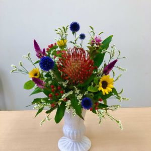 2025.7 フラワーサークル🍀にて ・ 暑さに強い花材を使い、制作してみました🤗
