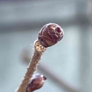 ツノハシバミ(角榛) 冬芽 葉痕 *カバノキ科ハシバミ属 花期は3〜4月 北海道〜九州の山地の日当たりの良い林縁に生育する落葉広葉低木! 雄花は秋から付いて春を待っています。 ↙️先端の冬芽と葉痕! 冬芽は赤みを帯びた水滴形、芽鱗に毛がはえる! ↘️は、あと一月ほどで見られる雌花! イソギンチャクの様な姿❗️ 2月23日撮影