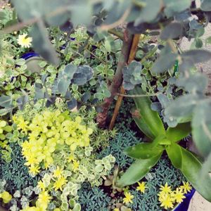 ユーカリグニーの株元にセダムをちょこちょこ置いてからあっという間にモリモリに😍 セダムちゃんたちも生息場所により違う表情みせてくれ、ちょこちょこがやめられません🤭