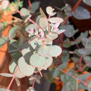こんにちは☀️ 『ユーカリグニー』 雨上がり💧新芽が🌱出ています! 去年秋に198円(破格✨)で購入して どんどん大きく成長してくれていて 嬉しいです🥰 成長が早いですね😊💕