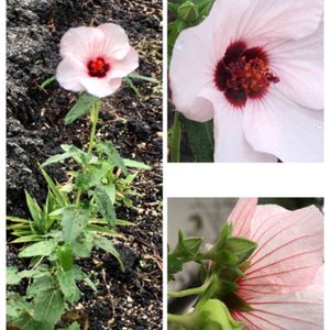 フヨウらしき花が敷ブロックの隙間から咲いてます‼️😄 正にど根性フヨウ❓😅
