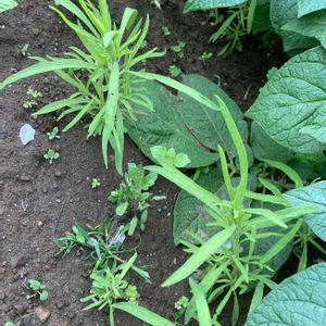 じゃがいもキタアカリの横にこぼれだねのコキアや大葉がでていた。別のところに移さないと。