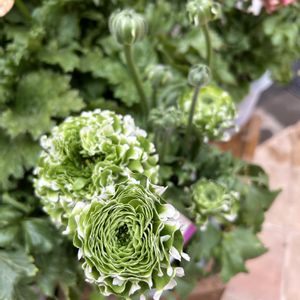 この春はいろんなラナンキュラスを見かけます こちらのラナンキュラスポンポン、グリーンと白、欲しいなぁ😉 でも、そんなに沢山育てられないので、お店での写真で我慢😣 ①②は同じ、ラナンキュラスポンポンイグルー ③はラナンキュラスポンポンマルヴェ とっても大きく(直径10cm以上)豪華なお花です.。❁*.:。❁