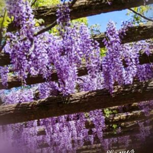___今日のお花「藤」___ 近くの公園 散歩道 今は花も終わっています 4月のpicです ❋3枚目は京都西陣の技法で描かれた 藤の色紙です 折り紙の兜と共に