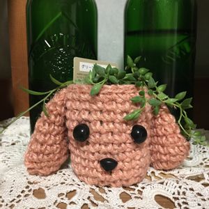 一応ワンちゃんのつもりデス^^; 麻ひもで編みました