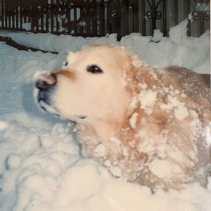 思い出の一枚🦮 雪が大好きだったゴールデンのビンゴくん🦮と美しい夕焼け💕 天気予報を見ると明後日は雪だるま 生活に支障が出ないようにと🙏