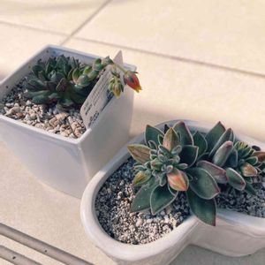 このアプリで紅葉して真っ赤なの見たので、全て1号鉢を購入して寄せた(植えただけ💦) 🍂ヤマトヒメ エケベリア属 3株 ついでに、 🍂ヤマトニシキ エケベリア属 2株 黄色いワンポイントで 🍂月の王子 セダム属も追加。 落ち着いたら、隙間にセダムでも足そうかな?