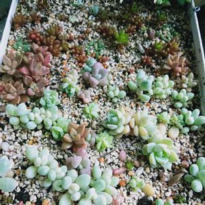 このぽいぽいBOXは 車庫脇に置いてあります😀 去年の秋頃にぽいぽいと ほんとテキトーに撒いたもの😄 育ってるものと、 土が合ってないのか あまり大きくないものも様々😊 新たに粉雪を挿し木したものの 下葉をパラパラと撒きました🌱 粉雪、葉挿しでイケるかな?