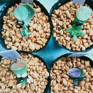 こんにちは(*´°`*) 昨日、今日と暑いです。 5月頃にお迎えしたコ♡ 花が終わってたので どっちかわからなかったケド♡ よーやくわかりましたー♡ 8月下旬頃から少しずつお水 あげ始めたら右側のコ 早くも花芽が✿*.(❁′ᗨ‵❁)*✲゚ しかもピンク色♡ こちらが桃園さんでした♡ 左側の桜貝さんはあまり 水を上手く吸えない様子で シワシワ(˘•ᴥ•˘) まだお眠なのかな??? ひとまず植え替えしました。 ふっくら元気になーれ。