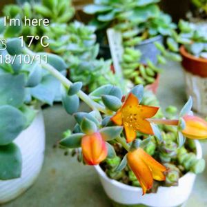 今朝の強風に驚いて飛び起き 外の倒れたらヤバそうな 多肉チャンたちをバタバタと 玄関に移動しましたアセ