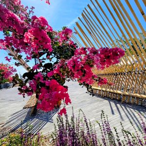 ツルツルすべすべクネクネ カッコいいサルスベリ🩷 このあと、 -5時間待ちのスペシャル花火-🎆✨ 花火とレストランのためなら 待てるようです😅 (海風が信じられないくらい涼しい場所だっただけなんですよネ) 爆発音だけでなく、 ジュワジュワジュワと何輪もの花が咲き終える音まで明快になんども聴こえつづけてた🎵 ダイナミックな花火観覧に なりました🎵😊