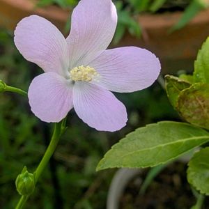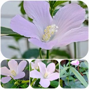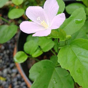去年お迎えした 💗ハイビスカス🌺ロバツス💗 今年も咲いてくれました➰🎵 這性で3cm前後の薄い桃色の花を咲かせます➰💠 こぼれ種も沢山溢れたと思いますが、 まだその形跡は見当たりません💦😅