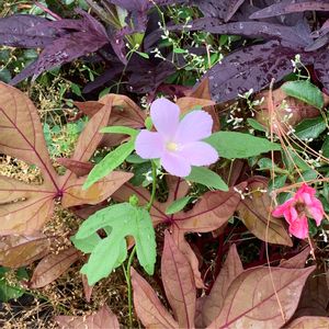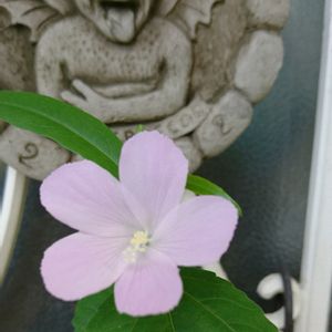 ハイビスカス ロバツス 5cmもない小さなハイビスカス 原種だそうです 可愛いですよ~(,,> <,,)♡ 例年なら一角に沢山咲いて楽しませてくれるのですが 昨年この辺りを掘り返したので少ないです(*ˊᵕˋ*)੭ ੈ こぼれ種もしますのでまた増えていく筈です🎶 名前を忘れていましたが しもぴーさんに教えて頂きました(*'▽'*)♪
