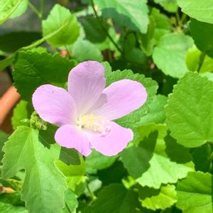 ハイビスカスロバツス☺️ 数年前に花友さんからもらったのですが、こぼれ種で毎年咲いています。 優しいピンクで癒されます✨