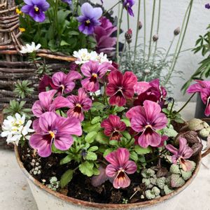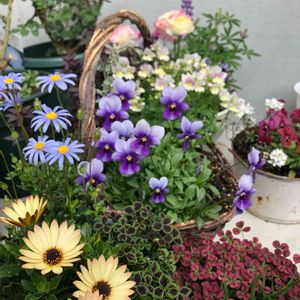 見切り品ビオラさん😆 ヘナヘナだったのですが、 色が可愛くて💕 そしてかわいそうで😅 お連れしました☀️ お日様いっぱいあたる場所に おいてあげよう❤️