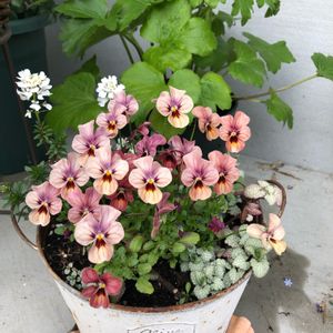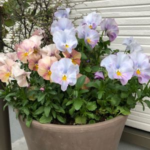 すじすじビオラさん😊💕 ブリキポットは可愛くて好きなんですが、 水はけがイマイチな気がします😔 何か工夫したら水はけ良くなりますかね🧐