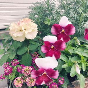 よく咲くスミレ ロゼ🎀 リボンみたい咲いていて可愛いです🥰✨ ミニバラは色を変えながら、1ヶ月咲き続けています😳 こんなに花持ちが良いとは知りませんでした😆