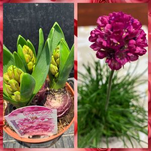 ◉ヒアシンス キジカクシ科/ユリ科 別名 ヒヤシンス 球根多年性植物 花色 赤,ピンク、白 青、紫 芳香があります❣️ ◉アルメリア イソマツ科 和名 ハマカンザシ 花色 赤,ピンク,白 細長い茎の先端に丸い ボール状に花がつきます 葉は細長くこんもりと 密に茂り、その間から 花が次々と咲きます