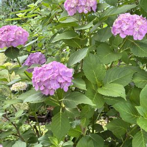 今日の庭から 去年 お花屋さんで見つけた紫陽花 ふちがピンクにまるくなってきました 紫色のは、完成形かな ホタルブクロがスモークツリーのすきまから、こんにちは 今日もおつかれさまでした