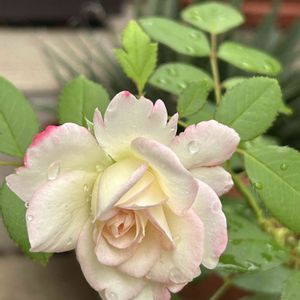 とても蒸し暑い一日 今日も おつかれさまでした 今年、うちに来てくれたバラが また咲いてくれました 今日は ふちどりのピンクが やっぱり濃くなっていました 不思議です まるで、お酒に酔って赤くなっているようで