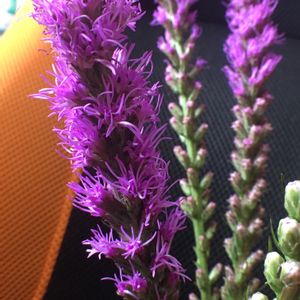 リアトリス キク科 ユリアザミ属 切り花で購入です😀 穂状の花を咲かせるスピカタ種 球状に花を咲かせるスカリオサ種があるようで投稿はスピカタ種です😀