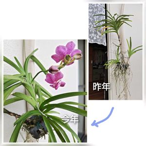 ①昨年、葉が落ちて長〜くなったバンダの幹を切りました。枯れずに元気🎶お花も咲きました。まずは一安心です(θ‿θ) ②出窓のコチョウラン もうすぐベランダへ移動します(◔‿◔)
