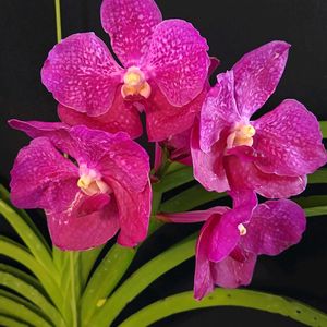 V. Memoria Susumu Pink 咲きました❣️ つぼみが一つシケましたが、5輪咲いたのでOKかな 濃い美しいピンクです 光の加減で紫っぽくも見えます しかし、ほかのバンダは花芽の気配無し😓