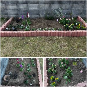忙しくて手つかずだったお庭に花壇を作りました🪻🧱 花壇周りをどのようにレイアウトしようか思考中です🤔