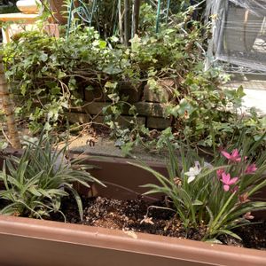 アッツ桜🌸お花が済んだので植え替えました✨ ドンドン増えたらどーしよう 霜にやられてダメだと思ったそら豆 レタス🥬葉がむすばなくそのままにしていたら花 エンドウ🫛