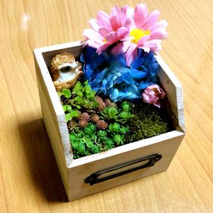 みなさんおはようございます😊 ネットで購入したミニチュアハウスを箱庭風寄せ植えに置いてみました🥰可愛いから自己満足