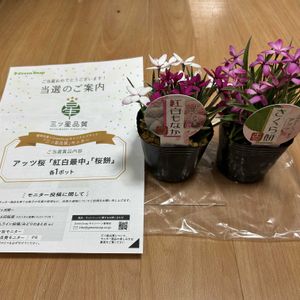 モニターに当選しました。ありがとうございます😊 アッツ桜のさくら餅と紅白もなか、大事に育てたいと思います。 #三ツ星品質モニター