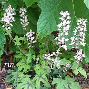 1ヶ月前に連れ帰ったティアレラ。 少し前に地植えにしました🌱 ちょっと大きくなったかも😊 お花もまだ咲いてます💠