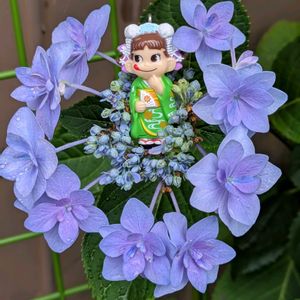 こんにちは🤗 1️⃣2️⃣紫陽花とペコちゃん😘 🏷ペコちゃん祭り 3️⃣初の2輪咲きのトケイソウ😄花友さんの2輪咲き羨ましいって思っていた次の日にまさかのびっくりきたー!🙄 4️⃣プランター育ちの家庭菜園🍅🥒収穫しました💞 5️⃣パッションフルーツの葉に昨日から住み着いたらしい🐸ちゃん😁 今もいるよ〜😉