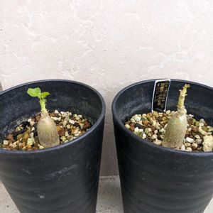 毎月3、4は 🏷みしょり隊🌱 母:ヤトロファ・ベルランディエリ (錦珊瑚) 父:ヤトロファ・ポダグリカ (珊瑚油桐) すくすく成長してます😊 今年の実生してる中でも特に注目してるコ達💕 ハイブリッドならではの これからどう成長していくのか、ドコが父親似で ドコが母親似になるのか非常に興味深くワクワクしちゃいます💚 今の感じだと葉は父(珊瑚油桐)に似て 塊根のフォルムは中間かなー。 でも母(錦珊瑚)の特徴の塊根にあるドットは出てきてます♪ 1年後、2年後はどんな風になるだろう😆✨