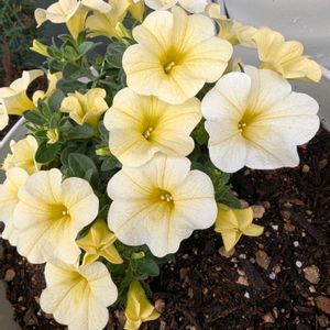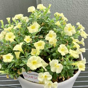 我が家のカリブラコアたち。咲いてきましたが、雨ばかりだったせいか全体的にちょっと徒長ぎみですね。。梅雨時より雨降ってる気がします。 1枚目:ミリオンベル バターポップコーン きれいな色ですね〜たくさん咲いて良きです。 2枚目:スーパーベル ハニーヨーグルト こちらも同じような色合いですが、爽やかな感じがしてこれも良きです。 3枚目:ミリオンベル チェリーピンク なんかボサボサになっちゃいました(笑)。なんでだろう。。花はすごくきれいなんですがね🤔 4枚目:ミリオンベル レモン 今年大活躍のレモン😍少しピークは過ぎましたが、それでもかなりの見ごたえ。このお花本当に最高です。あとで切り戻して今年最後の満開に備えます。
