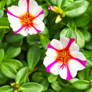 ポーチュラカ<フェリーチェ>💕💕 花弁にくっきりと入るストライプ柄😍 惹かれてしまい、買ってしまった😅
