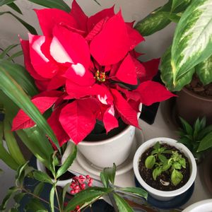 2年目のポインセチア とうとうこんなに赤くなってくれました 朝が来て暗闇から解放してあげる度に 真っ赤な葉っぱが増えています❤️
