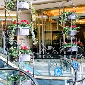 月に一度 レッスンに訪れるビルの入口です。 隣接するホテルのレストランは 連休が明けても相変わらず賑わっています☕🍴 今月は 初夏の風を感じるピンクと白の爽やかな寄せ植えが迎えてくれました💗🤍💗🤍 *ガウラリリポップピンク *ユーフォルビア ダイアモンドフロスト * アイビー