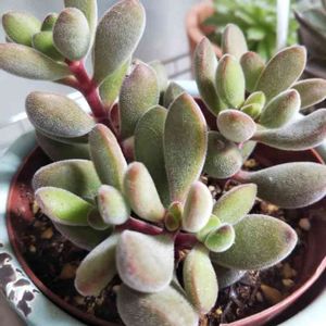 多肉植物 ベンケイソウ科 タマバ(玉葉) うぶ毛あるの見えますか? うちの子痩せてるよね🤭 ポロポロぽろぽろ触ると落ちてスカスカになってきました😭 もっとプリプリふっくらさせないと…