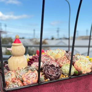 穏やかな晴れ間がありました。 鳥かごの寄せ植えは、寒波も強風にも問題なく可愛くなりました😊 それ以外の子はみんな植え替えました。 鉢の数を減らして可愛い鉢に変えたのはオフタルモフィルム。 頭が傷になった乙女心と虹の玉はチョンパして植え替え。 エケベリア系は傷で黒くなった子もいて…。 さあ、どうなるか。