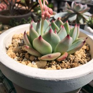 こんにちは☁️ 昨日から風が強いです🌪 スノージェイド❣️ 徒長してるので、上から撮りました😅