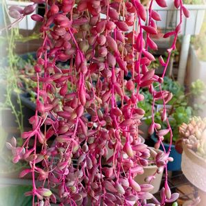 ルビーネックレスさん🎶 1メートルになりました記念🤗&ネックレスの日に初参加させていただきます٩( 'ω' )و ホームセンターで、ちっちゃくてぷりぷりで少し紫のお姿に一目惚れして😊約3年近く経ちました♡ 大好きな多肉ちゃんです♪