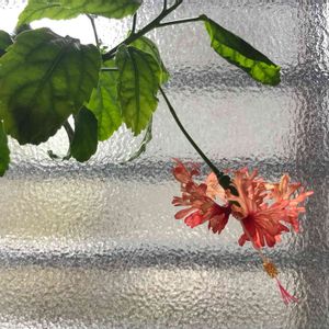 ハイビスカス🌺オレンジフラミンゴと、風鈴仏桑華 アブラムシは大丈夫みたいです。 エアコンをつけていて暖かかったから早く咲きました。