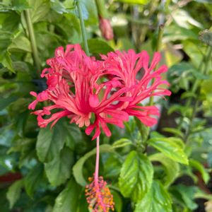 ハイビスカス🌺風鈴仏桑華 1月咲いて、ずっとおやすみだったので心配してましたが、最近咲くようになり、蕾も沢山ついてます。 こちらはあまり枝が伸びないから暫く切り戻しはしなくて済みそうです。 秋には植え替えして 1度植木鉢を替えてやりたいです。