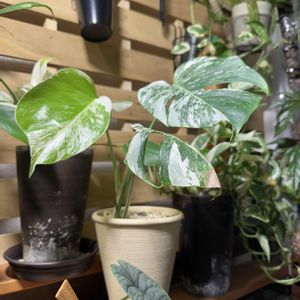 斑入りモンステラ3鉢鉢増しした😊セラアート5号😊大きくなーれ モンステラタイコンストレーション🇹🇭 モンステラホワイトタイガーハーフムーンポルシギアナ🐯 斑入りモンステラ(バリエガータ)の主な人気品種をご紹介します。 🌿 白い斑(白斑)が入る系統 この系統は、深い緑と純白のコントラストが非常に美しいのが特徴ですが、白い部分は光合成能力が低いため、通常の緑葉のものよりデリケートな管理が必要です。 • ボルシギアナ・アルボ・バリエガータ(通称:ホワイトタイガー) • 特徴:深い緑の葉に、ペンキを散らしたような純白の斑が不規則に入ります。 • 分類:ボルシギアナ系のため、茎は細く、つる性の性質が強い傾向があります。 • 注意点:斑の入り方が不安定になりやすく、育成難易度はやや高めです。 • デリシオーサ・アルボ • 特徴:デリシオーサ(太い幹、大きな葉)の変異種で、純白の斑が入ります。 • 分類:ボルシギアナ系よりも葉が大きく、より肉厚な傾向があります。 • ホワイトモンスター(テンシンラン) • 特徴:広範囲にわたり白やクリーム色の斑が強く入り、時には葉全体がほぼ真っ白になる部分が現れることもあります。 🌟 黄色・クリーム色の斑(黄斑・散斑)が入る系統 この系統は、黄色やクリーム色の斑が入り、白斑の品種と比べて斑が安定しやすい傾向があります。 • タイコンステレーション(通称:タイコン) • 特徴:葉全体にクリーム色や黄みがかった斑が、まるで星を散りばめたように細かく入ります。 • 流通:タイで組織培養により作出された品種で、斑が安定しているため非常に人気があります。 • 分類:デリシオーサ系の特徴を持つことが多いです。 • デリシオーサ・オーレア(通称:イエローモンスター) • 特徴:鮮やかな黄金色や黄色の斑が、大理石のようなマーブル模様を描き出すのが特徴です。 • イエローマリリン • 特徴:濃い緑の葉に、明るい黄色やクリーム色の不規則な斑が入り、鮮やかなコントラストを楽しめます。 斑入りのモンステラは、どの品種も通常のモンステラよりも葉焼けしやすく、また**暗すぎると斑が消える(先祖返り)**ことがあるため、管理には特に注意が必要です。