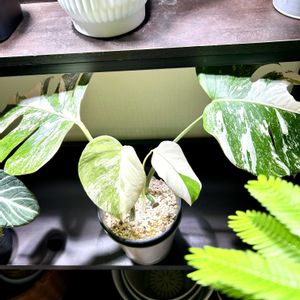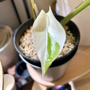 お気に入り😃モンステラホワイトタイガー🐯🐯🐯斑入りのモンステラは、どんな新芽が出てくるかいつも楽しみでワクワクします😊今回は2枚連続で真っ白な葉っぱが出てきました。😊 斑入りモンステラ(バリエガータ)の主な人気品種をご紹介します。 🌿 白い斑(白斑)が入る系統 この系統は、深い緑と純白のコントラストが非常に美しいのが特徴ですが、白い部分は光合成能力が低いため、通常の緑葉のものよりデリケートな管理が必要です。 • ボルシギアナ・アルボ・バリエガータ(通称:ホワイトタイガー) • 特徴:深い緑の葉に、ペンキを散らしたような純白の斑が不規則に入ります。 • 分類:ボルシギアナ系のため、茎は細く、つる性の性質が強い傾向があります。 • 注意点:斑の入り方が不安定になりやすく、育成難易度はやや高めです。 • デリシオーサ・アルボ • 特徴:デリシオーサ(太い幹、大きな葉)の変異種で、純白の斑が入ります。 • 分類:ボルシギアナ系よりも葉が大きく、より肉厚な傾向があります。 • ホワイトモンスター(テンシンラン) • 特徴:広範囲にわたり白やクリーム色の斑が強く入り、時には葉全体がほぼ真っ白になる部分が現れることもあります。 🌟 黄色・クリーム色の斑(黄斑・散斑)が入る系統 この系統は、黄色やクリーム色の斑が入り、白斑の品種と比べて斑が安定しやすい傾向があります。 • タイコンステレーション(通称:タイコン) • 特徴:葉全体にクリーム色や黄みがかった斑が、まるで星を散りばめたように細かく入ります。 • 流通:タイで組織培養により作出された品種で、斑が安定しているため非常に人気があります。 • 分類:デリシオーサ系の特徴を持つことが多いです。 • デリシオーサ・オーレア(通称:イエローモンスター) • 特徴:鮮やかな黄金色や黄色の斑が、大理石のようなマーブル模様を描き出すのが特徴です。 • イエローマリリン • 特徴:濃い緑の葉に、明るい黄色やクリーム色の不規則な斑が入り、鮮やかなコントラストを楽しめます。 斑入りのモンステラは、どの品種も通常のモンステラよりも葉焼けしやすく、また**暗すぎると斑が消える(先祖返り)**ことがあるため、管理には特に注意が必要です。