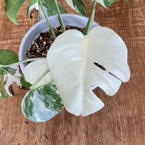 モンステラ ボルシギアナ 現在10株近く増殖中だけど親株がハーフムーンだと真っ白や真緑が出やすい。 初めから真っ白や緑なら廃棄するけど、3枚目まで成長してからの真っ白はキツい(^^;